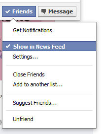 In addition, if you click on settings, there are some more options detailing what sort of updates you want to receive from that person ![]() There is also an option you can toggle for whether or not you want to receive notifications from this person. (kinda like adding them to your "close friends" list) - Parents will usually want to turn this on for their kids' profiles. ![]() Another alternative is this new facebook feature: https://www.facebook.com/friends/organize?source=feed_action You also might want to understand how to set up Custom Friend Lists as you can use them to show only updates from certain friends at a time. For example, if you put your family in one list, and your friends in another list, when you view the list page, only updates from those people will show in that custom news feed, making it easier to keep track of different groups of peoples' updates. Keep in mind that in addition, who is in each list is kept private to you only. |